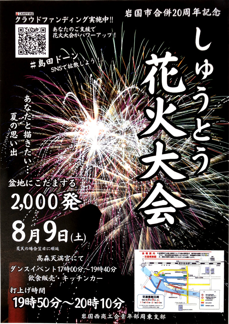 地元の青年部を中心に、クラウドファンディングやメッセージ花火の企画などを通じて、運営費の高騰にも負けず「しゅうとう花火大会」を未来へ受け継ごうとする地域の強い想いが感じられます。
