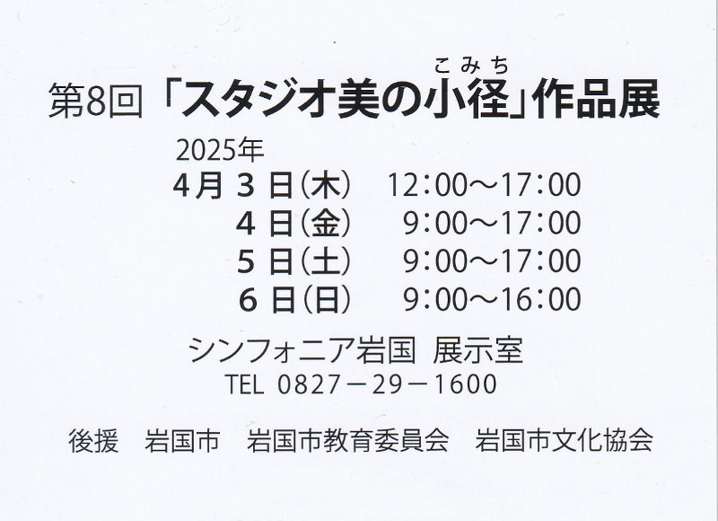 第8回スタジオ美の小径作品展がシンフォニア岩国で開催されます